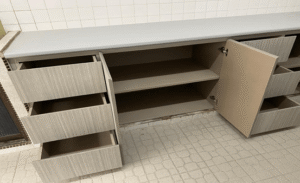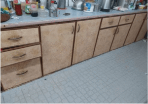 The family, consisting of a senior stroke survivor, his spouse with physical ailments, and two adult children with special needs, was facing significant challenges in their daily needs. Their 20-year-old kitchen cabinets were in bad condition due to wear and tear, posing a safety risk for the family.